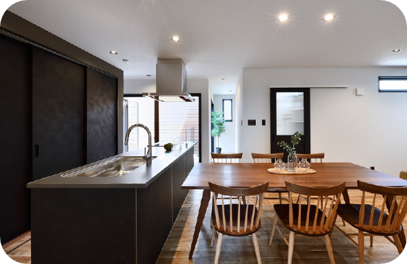 もちろん、家事動線も考え、配膳や後片付けを簡単にする工夫も施します。成長期のお子様とのコミュニケーションをとりながら、共働きのご夫婦が家事を上手に時短できる工夫も含めてご提案いたします。